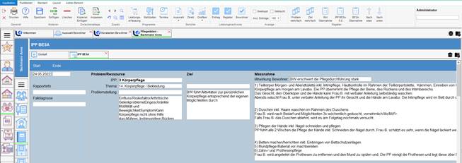 Im Beispiel sehen Sie den Import der Einfluss- und Risikofaktoren, Symptomen, Ressourcen, Hilfsmittel und ergänzende Informationen. Ebenfalls wird der Pflegeschwerpunkt im Bereich Thema abgebildet. Im Bereich Ziel werden die vordefinierten BESA-Ziele übernommen und abgebildet.