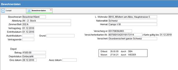 In diesem Register erhalten Sie administrative Informationen zu dem Bewohner.