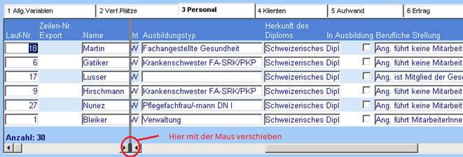 Im Weiteren kann in diesen Kapiteln die horizontale Ansicht gesplittet werden, damit die vorderen Kolonnen beim Scrollen sichtbar bleiben: