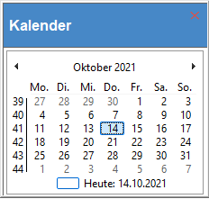 Klicken Sie mit der rechten Maustaste in ein Datumsfeld, wird ein Kalender geöffnet, wo ebenfalls per Doppelklick ein Datum ausgewählt werden kann.