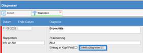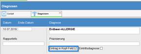 Eintrag in Kopf-Feld / Eintrittsdiagnose