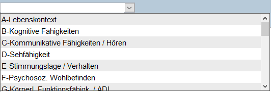 Nun können Sie mit der linken Maustaste auf den Pfeil klicken und es öffnet sich ein Balken (mit oder ohne Einträge). Können Sie nur ein leeres Feld sehen, so sind für dieses Dropdown Feld noch keine Einträge definiert worden.