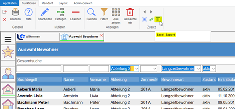 Für beliebige Masken steht in der Symbolleiste das Symbol Excel-Export zur Verfügung.