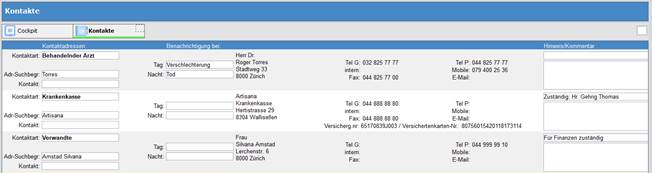 wie beispielsweise Angehörige, zuständige Ärzte, Rechnungsempfänger, etc.