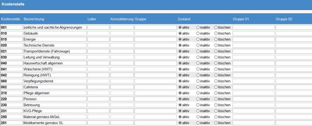 Erfassen Sie die für Ihren Betrieb notwendigen Kostenstellen mit Nummer und Bezeichnung.
