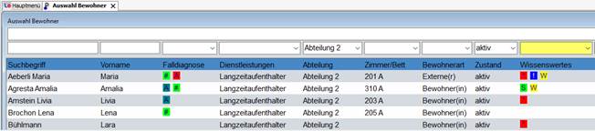 um Themen, die bei Auftreten bei einem Bewohner, sogleich auf der ersten Seite