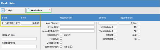 Wird bei einem Medikament nur das Stop-Datum eingegeben, erscheint dieses bis 24.00 Uhr auf dem Bericht der „Rüstliste“.