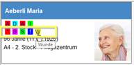 Werden in den genannten Themenregistern Einträge dokumentiert, werden diese im Pflege- und Betreuungsmanager auf der Ansicht Gesamtinformationen sowie im Personalienfenster farbig dargestellt.