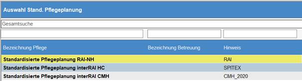 Darstellung im Register «Standardisierte Pflegeplanung»