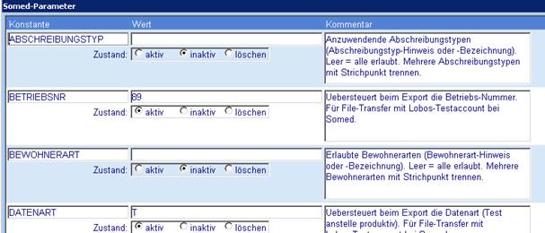 Die Parameter werden Lobos-seitig mit Zustand inaktiv mitgeliefert (update.sql). Die Parameter dienen insbesondere dazu, Problemfälle besser analysieren zu können. Folgende Parameter sind momentan verfügbar: