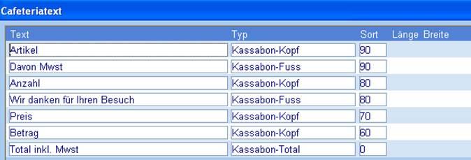 Definieren Sie in dieser Stammdatei den Cafeteria-Bon.