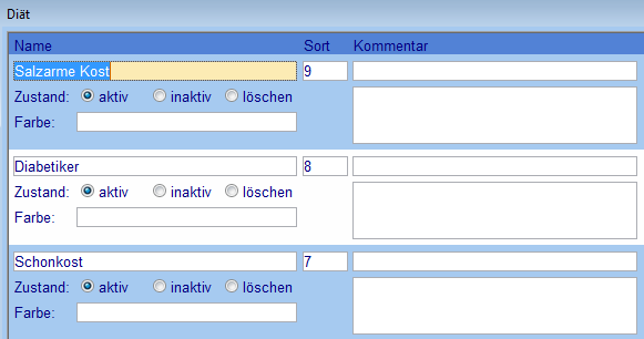 Jedem Mahlzeitenempfänger können eine oder mehrere Diäten zugewiesen werden.