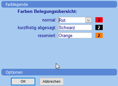 Mit einem Rechtsklick auf die Belegungsplanung kann die Farblegende mit den Bedeutungen der Farben aufgerufen werden. Bei Bedarf können die Farben geändert werden.
