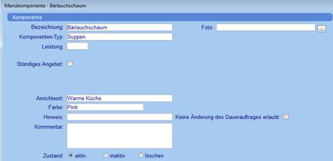 Bei Bedarf können Fotos der Menükomponente hinterlegt werden. Es wird der Pfad zum Foto gespeichert. |