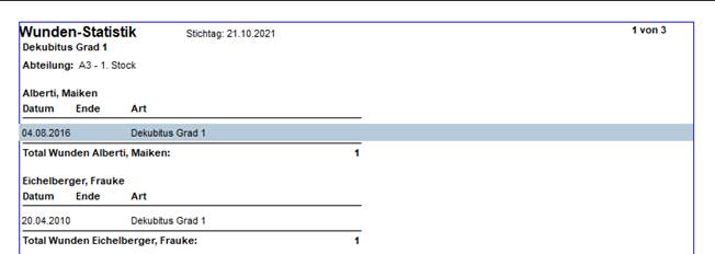 Hier haben Sie die Möglichkeit, statistisch auszuwerten, wie viele Bewohner mit einer Wunde in Ihrer Institution leben.