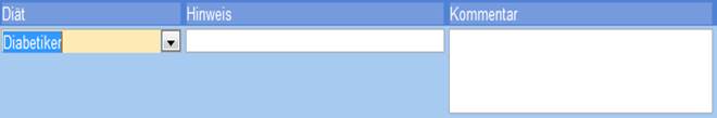 Dem Bewohner können eine oder mehrere Diäten zugewiesen werden. In der Mahlzeiten-Erfassung werden die Diäten des Bestellers in einem separaten Feld angezeigt.