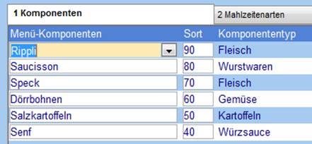 Wählen Sie die einzelnen Menü-Komponenten aus, aus welchen sich das Menü zusammensetzt und defininieren Sie bei Bedarf über die Spalte Sort die Reihenfolge der Komponenten.
